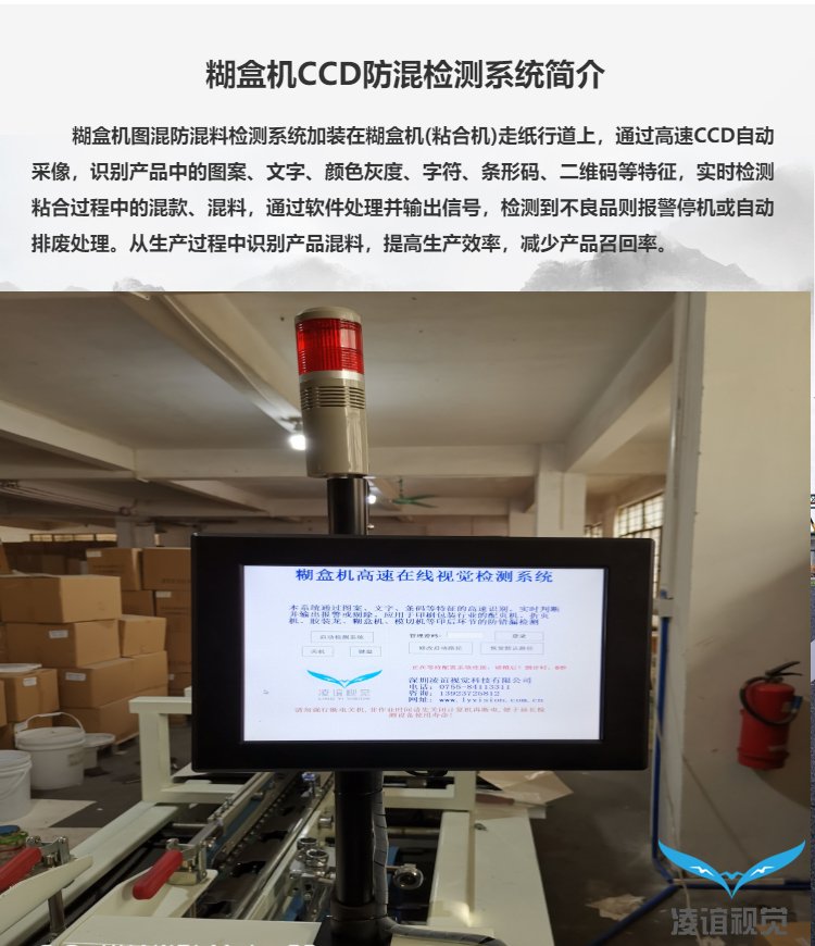 在包裝盒糊粘過程中出現混料、混款、印刷缺陷的問題是通過糊盒機加裝視覺檢測系統對表面圖文字符比對、條形碼/二維碼識別,色塊識別等方式實現防混及漏印檢測。