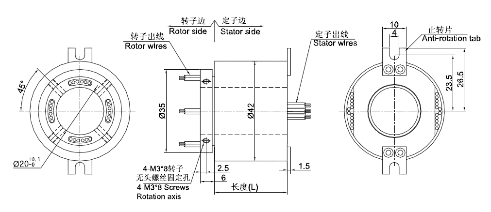 GT2042系列滑環(huán),主要應(yīng)用于360度連續(xù)旋轉(zhuǎn)且需要保證電源,信號不能中斷的場合:多用于各種自動貼補(bǔ)強(qiáng)機(jī)、自動焊接設(shè)備、精密模切機(jī)、鉚釘插件機(jī)、桌面點膠機(jī)、分選機(jī)、切紙機(jī)、裹式包裝機(jī)、全自動軟抽袋立封口一體機(jī)、半自動臥式軟抽袋雙頭封口機(jī)等任意需要360°旋轉(zhuǎn)導(dǎo)電或傳輸各種控制信號的裝置。
