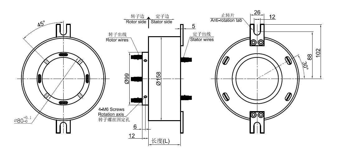 GT80158系列整體式精密導(dǎo)電滑環(huán),主要應(yīng)用于360度連續(xù)旋轉(zhuǎn)且需要保證電源,信號(hào)不能中斷的場合:多用于醫(yī)療器械、紡織業(yè)設(shè)備、礦山工程機(jī)械、塑膠/硅膠制品生產(chǎn)設(shè)備、轉(zhuǎn)馬游樂設(shè)備、自動(dòng)化生產(chǎn)設(shè)備、珍珠棉(E P)聚乙烯發(fā)泡塑膠機(jī)械設(shè)備、工業(yè)機(jī)器人、教育仿真設(shè)備、工程檢測儀器、金屬表面精整加工設(shè)備、自動(dòng)拋光設(shè)備、機(jī)械手、造紙生產(chǎn)線、印刷機(jī)械設(shè)備、干燥機(jī)設(shè)備、熱熔膠涂布機(jī)、連續(xù)輸送機(jī)械設(shè)備、傳感器、電纜生產(chǎn)與 檢測設(shè)備等任意需要360°旋轉(zhuǎn)導(dǎo)電或傳輸各種控制信號(hào)的裝置。