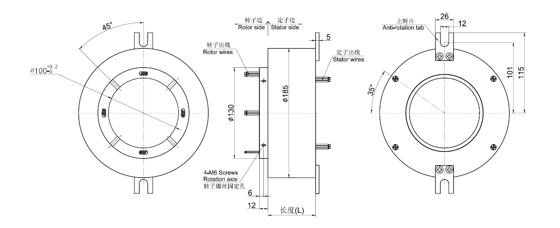 GT100185系列整體式精密導(dǎo)電滑環(huán),主要應(yīng)用于360度連續(xù)旋轉(zhuǎn)且需要保證電源,信號(hào)不能中斷的場(chǎng)合:多用于加熱滾筒、自動(dòng)焊接設(shè)備、金屬表面加工設(shè)備、擠出流延復(fù)合設(shè)備、靜態(tài)扭矩傳感器、壓力變送器、工業(yè)機(jī)器 人、電線(網(wǎng)線)電纜生產(chǎn)設(shè)備、電子(紡織品)質(zhì)量檢測(cè)儀器、機(jī)器人生產(chǎn)線、汽車涂裝和裝配線的車間設(shè)備改裝、加速度傳感器、研磨分散機(jī)、旋轉(zhuǎn)餐桌等任意需要360°旋轉(zhuǎn)導(dǎo)電或傳輸各種控制信號(hào)的裝置。