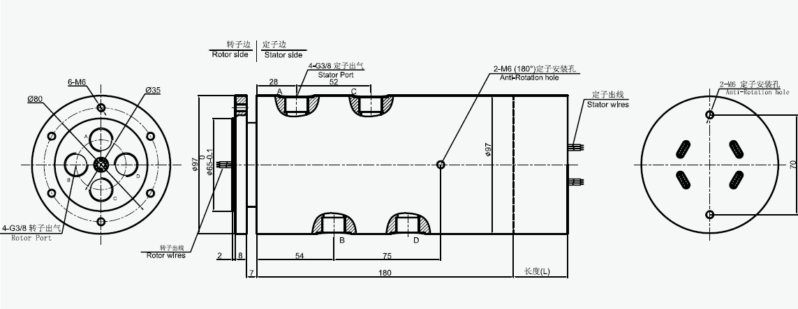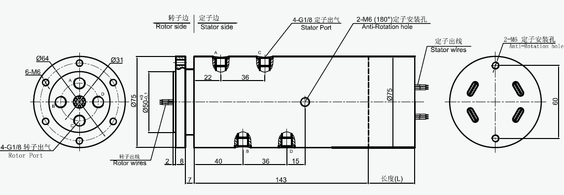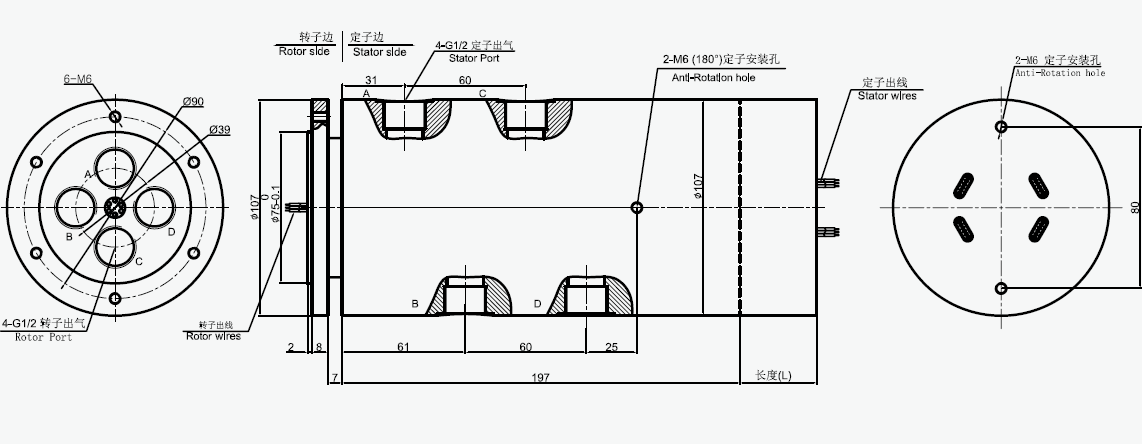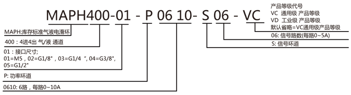 MAPH400-XX 氣液電一體滑環(huán)選型表 1)XX=01,接口尺寸=M5, 氣管規(guī)格3~6mm 2)XX=02,接口尺寸=G1/8,氣管規(guī)格3~10mm 3)XX=03,接口尺寸=G1/4,氣管規(guī)格3~12mm 4)XX=04,接口尺寸=G3/8,氣管規(guī)格3~16mm 5)XX=05,接口尺寸=G1/2,氣管規(guī)格3~20mm |