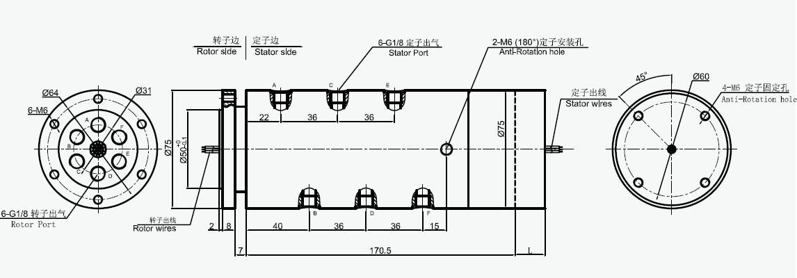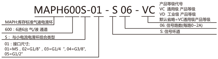 MAPH600S-XX 氣液電一體滑環(huán)選型表 1)XX=01,接口尺寸=M5, 氣管規(guī)格3~6mm 2)XX=02,接口尺寸=G1/8,氣管規(guī)格3~10mm 3)XX=03,接口尺寸=G1/4,氣管規(guī)格3~12mm 4)XX=04,接口尺寸=G3/8,氣管規(guī)格3~16mm 5)XX=05,接口尺寸=G1/2,氣管規(guī)格3~20mm |