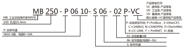 | MB250系列工業(yè)總線滑環(huán)選型表 | |||||||||