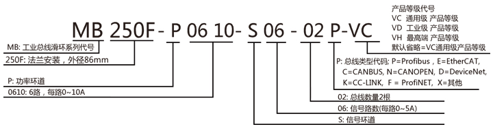 | MB250F系列工業(yè)總線滑環(huán)選型表 | |||||||||