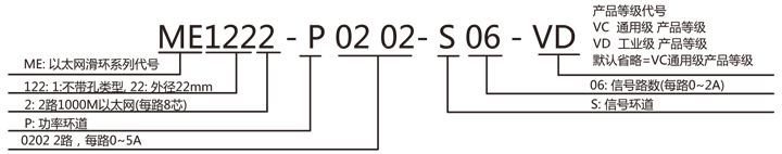 | ME1222雙通道以太網(wǎng)滑環(huán)系列選型表 | ||||
