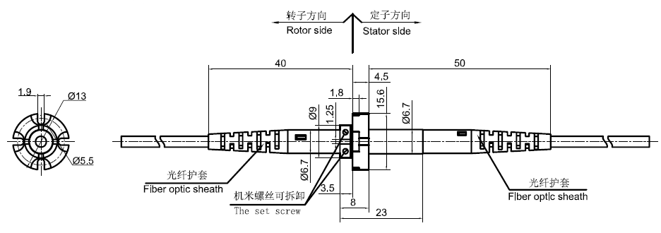 MFO100A系列是光電一體化旋轉(zhuǎn)接頭,傳輸1路光纖,整體外徑非常?。?.7mm),整個產(chǎn)品非常緊湊,專門為對空間尺寸有要求的應(yīng)用場合。