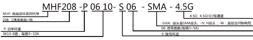 | MHF208 - 2通道高頻+電組合滑環(huán)選型表 | |||||||||||