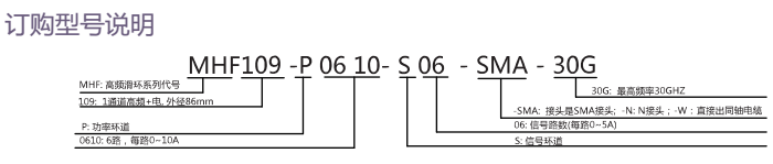 | MHF109-單通道高頻+電組合滑環(huán)選型表 | |||||||||||