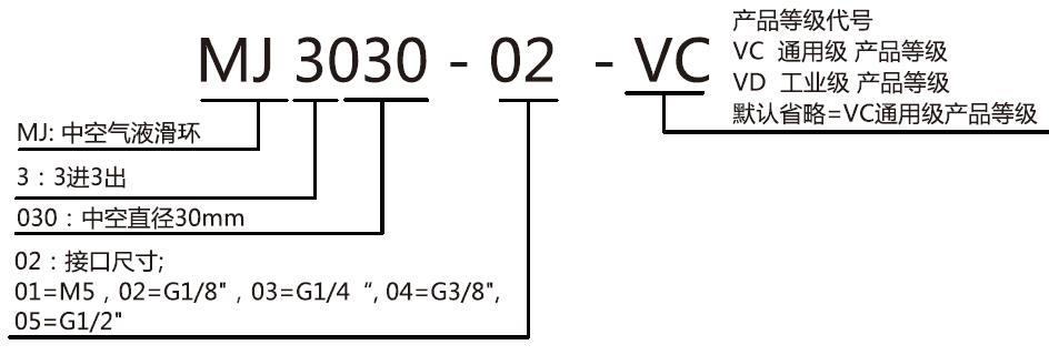 | MJ3030氣/液滑環(huán)選型表 | ||||