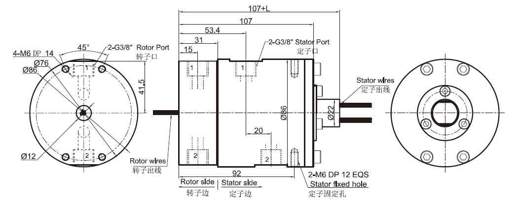 MK23(純氣動(dòng)旋轉(zhuǎn)接頭)尺寸圖 2進(jìn)2出G3/8"牙