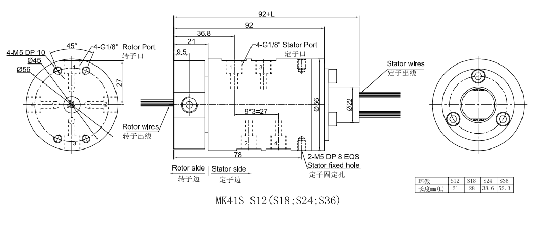 | MK41S-S12(S18,S24,S36)尺寸圖 4進4出G1/8" + 12~36路信號(2A) | |||||