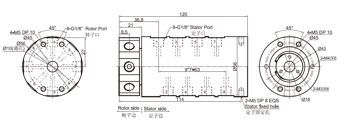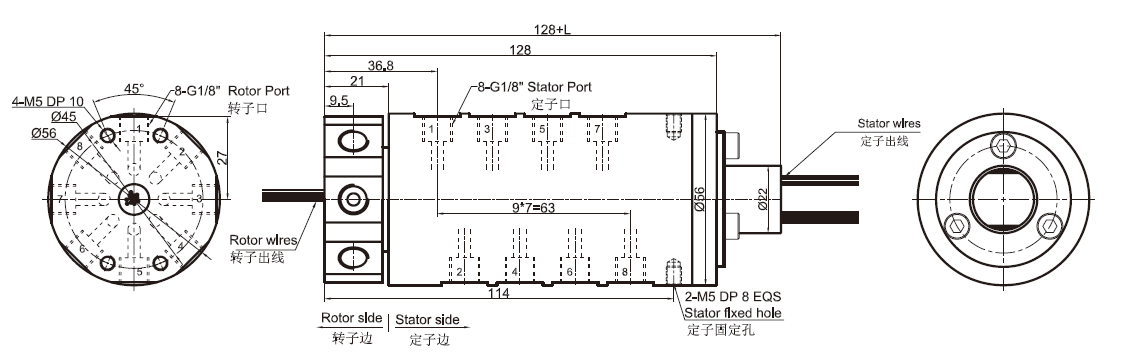 | MK81(純氣動(dòng)旋轉(zhuǎn)接頭) 尺寸圖 8進(jìn)8出G1/8"牙 | |||