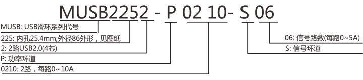 | MUSB2252 2 通道USB滑環(huán)系列選型表 | |||||
