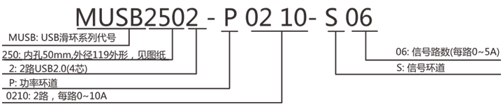 | MUSB2502 2 通道USB滑環(huán)系列選型表 | |||||