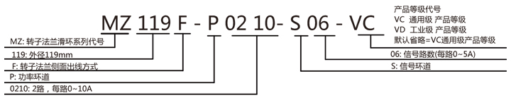 | MZ119F 系列滑環(huán)選型表 | |||||||